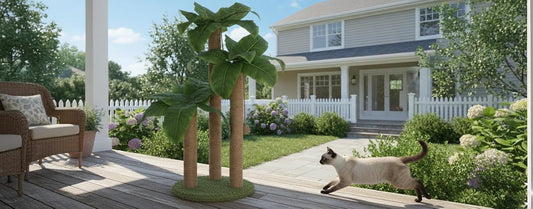 • 31.5 Inch Palm Tree Cat Scratching Post, Cat Scratcher Tree with 3 Scratching Poles & 2 Interactive Dangling Balls, Cats Scratching Posts for Indoor Kitten & Adult Cats