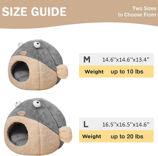 Cat Beds for Indoor Cats - Cat Bed Cave with Removable Washable Cushioned Pillow,2 in 1 Super Soft Cat Tent for Kitten and Small Cats, Lively Pufferfish Animal-Shape & Furniture, Grey Multiple Sizes