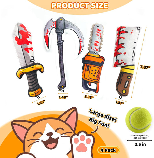 • 4Pcs Cat Toys, Horror Halloween Knife-Shaped Kitten Catnip Crinkly Sound Toys, Indoor Exercise for All Cat Breeds 6.5 Inches