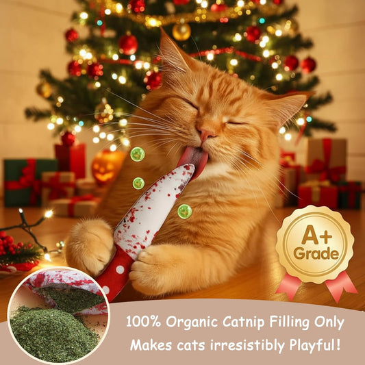 Spooky 5 PC Catnip Cat Toys, [100% Organic Catnip Filled, Cotton-Free] Funny Knife-Shaped Crinkly Sound Toys for Indoor Kitten Cat Nip Kitty Chew Toy